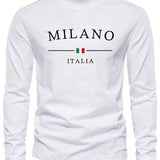 Camiseta de manga larga con cuello redondo informal para hombre con estampado de letra, otono