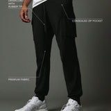 Sumwon pantalon cargo deportivo suave y comodo con estampado reflectante, bolsillos con cremallera oculta y cordon trenzado con punta de goma
