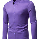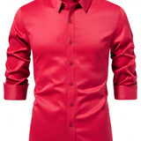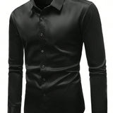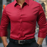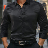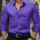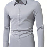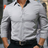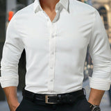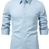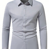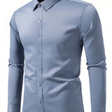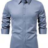 Manfinity mode 1 pieza camisa casual de unicolor de manga larga y abotonadura sencilla para hombre, otono