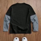 Manfinity urbanchill camiseta de manga larga holgada de algodon con estampado de letras en ingles, parchwork y estilo urbano casual y de moda para hombres, para amigos, anos 90