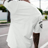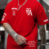 Manfinity emrg camiseta casual de manga corta con cuello redondo y estampado de eslogan grafico para hombre