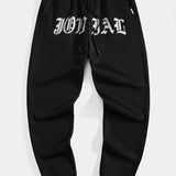 Manfinity streetez pantalones deportivos casuales para hombres con diseno de estampado de letra, cintura con cordon y bolsillos en angulo