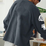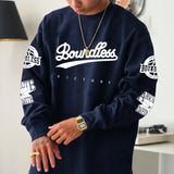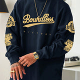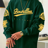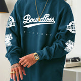 Manfinity sporsity camiseta de manga larga de cuello redondo con grafico de letras de ajuste holgado para hombre