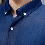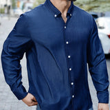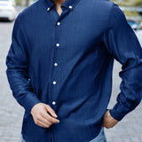 Manfinity mode camisa casual de manga larga de efecto jean de color liso con botonadura sencilla para hombre de talla grande, para salir
