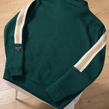 Manfinity chaqueta con cremallera y cuello alto para hombre de talla grande, con impresion de letras y rayas contrastadas en los lados, de estilo casual, ideal para salir en otono. chaqueta ligera de manga larga de color verde oscuro con cremallera y
