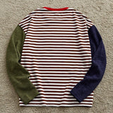 Manfinity techy camiseta casual holgada de manga larga de algodon tejido a rayas y parches, estilo vintage urbano, para el uso diario, para amigos