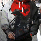 Sudadera con buzos con capucha extra grande para hombre con impresion digital 3d de guerrero bajo la luna roja, con cordon delantero