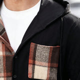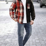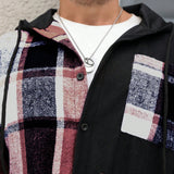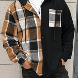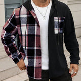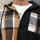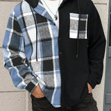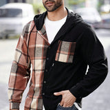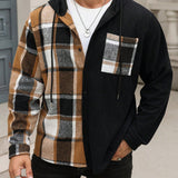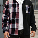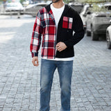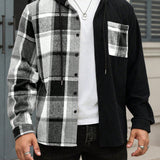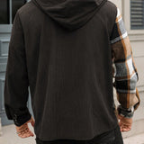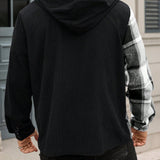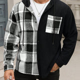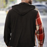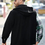 Manfinity homme chaqueta con buzos con capucha para hombre de talla grande con botones frontales y diseno de cuadros en contraste, ropa de otono