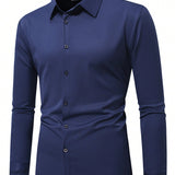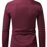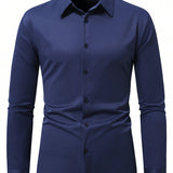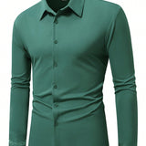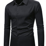 Manfinity mode camisa casual de negocios de manga larga, cuello liso y abotonadura frontal