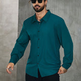 Manfinity homme camisa casual de manga larga de unicolor para hombres de talla grande para otono