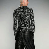 Manfinity uzero camiseta casual de manga larga con cuello redondo y hombros caidos, de punto con estampado de leopardo, adecuada para el otono