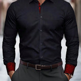 Camisa casual de manga larga con botones y cuello vuelto de unicolor elegante con parches, adecuada para negocios y ocasiones formales, para primavera/verano/otono