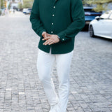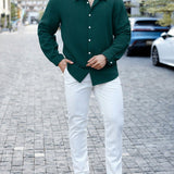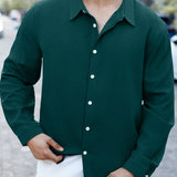 Manfinity casualmax camisa casual de vestir de manga larga con botones de unicolor para hombre de talla grande, para salir