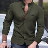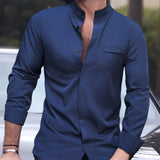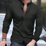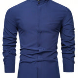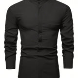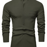 Manfinity mode camisa minimalista de manga larga con botones y bolsillo de unicolor para hombre, para uso casual diario