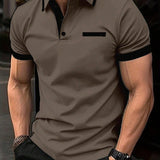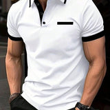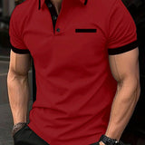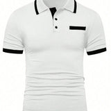 Manfinity homme camisa polo de manga corta casual con ribetes de bloques de color para hombre