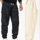 Nuevos pantalones informales de tela polar gruesa para hombre para otono/invierno, pantalones cargo de camuflaje con ajuste holgado y calido de moda
