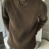 Sueter holgado de cuello redondo de unicolor y manga larga, talla grande para hombre, para otono/invierno, para trabajo, amigos