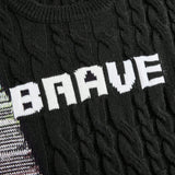Romwe men prep sueter de punto con patron de letras casual diario para hombres, para otono/invierno