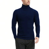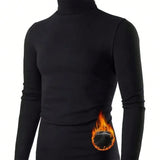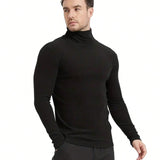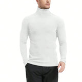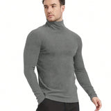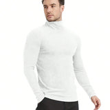 Camiseta de manga larga con cuello de tortuga de unicolor casual para hombres, otono/invierno