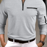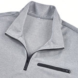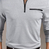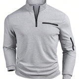 Camisa casual de manga larga con cuello alto, cremallera frontal, bolsillo con cremallera real y tejido de textura de gofre para hombre