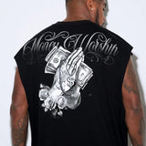 Manfinity modagents camiseta sin mangas de cuello redondo, estilo urban wear, con estampado de signo de dolar y flores, talla grande, de punto holgado para hombre