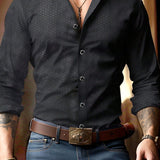 Camisa formal de manga larga con cuello abotonado en negro, adecuada para ocasiones de negocios, uso en la oficina, con diseno geometrico, apropiada para uso empresarial, formal y casual en primavera, verano y otono