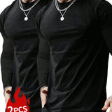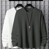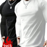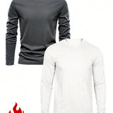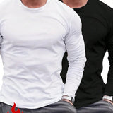 2 piezas camisetas basicas de manga larga informales para hombres, uso diario con estilo