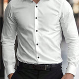 Camisa de vestir de manga larga con cuello con botones con diamantes para hombres, suave y transpirable, para uso formal, casual o de boda, para padrinos