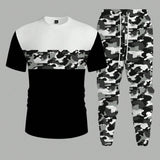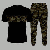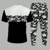 Manfinity homme conjunto de 2 piezas con camiseta cuello redondo y pantalones slim fit de color camuflaje y bloque de color de moda casual para hombres
