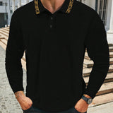 Homme camisa polo de manga larga casual con estampado geometrico para hombres de talla grande