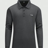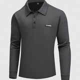 Homme camisa polo de manga larga informal con estampado de letras, talla grande, adecuada para trabajo y trayecto en otono