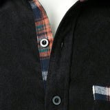 Camisa casual de manga larga para hombre con contraste de color en pana a cuadros