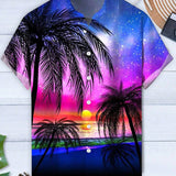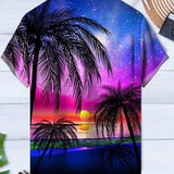 Camisa de manga corta con bolsillo y estampado de arboles de coco, puesta de sol y paisaje hawaiano, talla grande para hombres