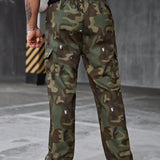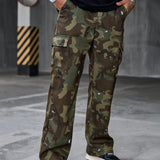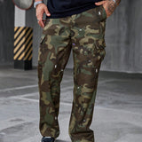 Manfinity casualcool pantalones cargo informales con estampado de camuflaje para hombres, pantalones rectos de pierna larga, para regalos de esposo o novio