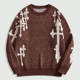 Romwe men goth sueter holgado de cuello redondo con patron de cruz para hombre, para otono/invierno