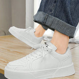1 par de tenis sin cordones comodos y antideslizantes de color plano para hombre, zapatos casuales minimalistas de color blanco de nueva para pareja