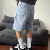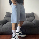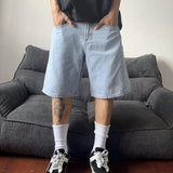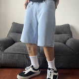 Manfinity emrg pantalones cortos de mezclilla holgados, de pierna ancha y ajuste relajado con bolsillos para hombres de talla grande