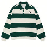 Manfinity dauomo camisa polo de manga larga con estampado de rayas de contraste para hombres de tallas grandes