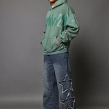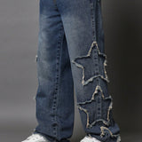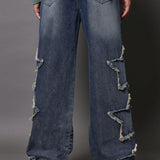 Sumwon pantalon vaquero suelto y ancho con dobladillo deshilachado y aplicacion en forma de estrella