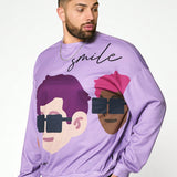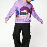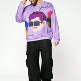 Manfinity cozemod sudadera de cuello redondo de manga larga con estampado facial, informal y holgada, de caida de hombros, para hombre talla grande, ideal como regalo para amigos, esposo o novio