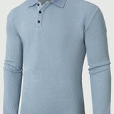 Homme camisa polo de manga larga con botones al frente, casual y sencilla, talla grande para hombres