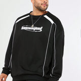 Manfinity cozemod sudadera holgada de cuello redondo de manga larga con estampado de letra para hombre talla grande, informal, para salir, negra, regalo para amigos, esposo, novio