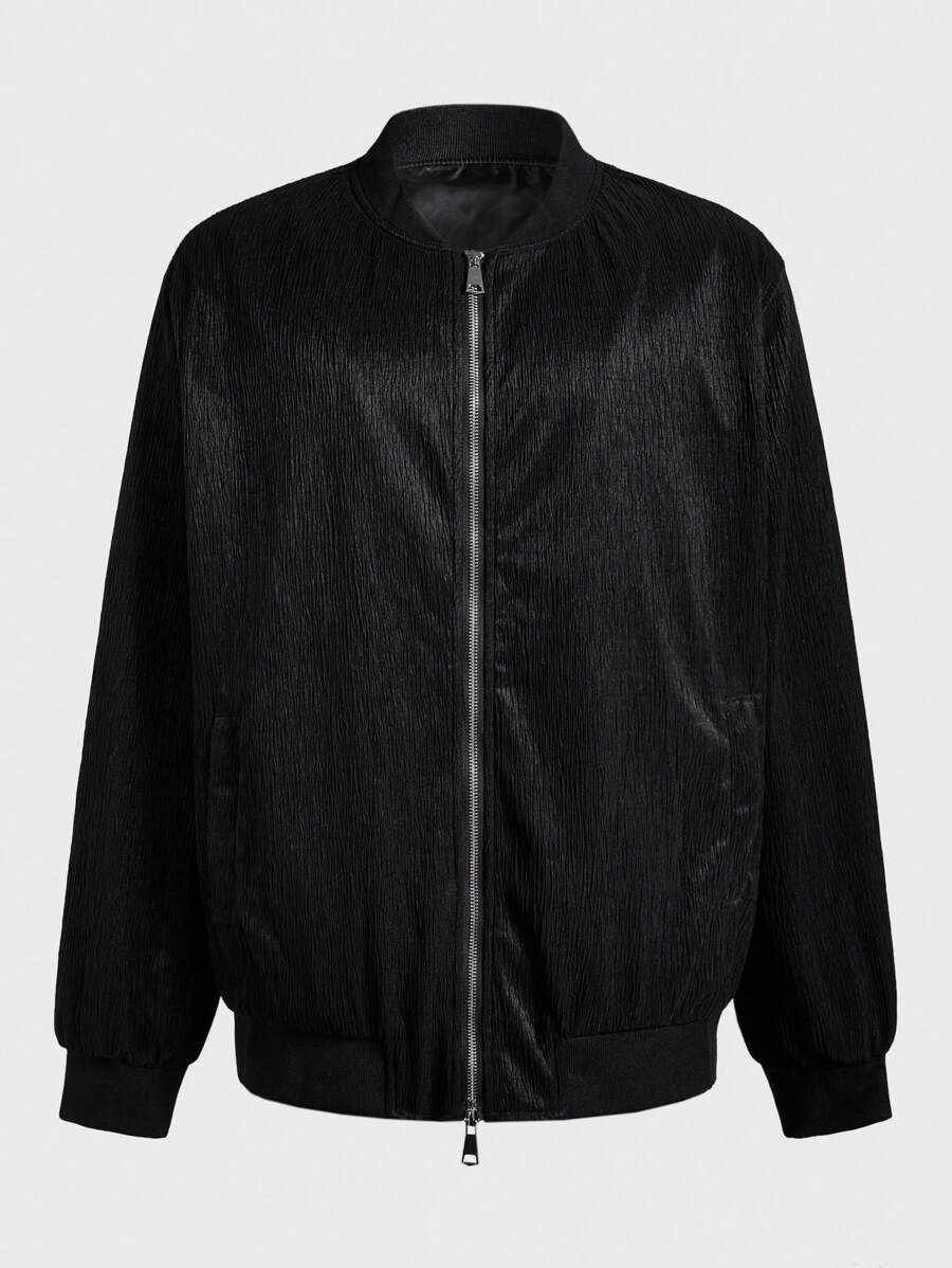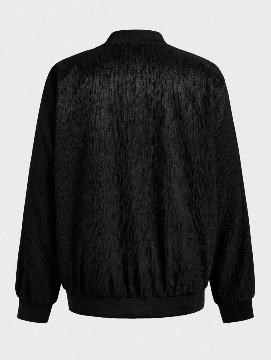 Manfinity casualmax chaqueta de beisbol casual con cremallera y manga larga de unicolor para hombre de talla grande, chaqueta grafica calida de moda para salir en otono, para regalos a amigos, esposo, novio