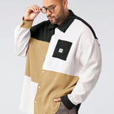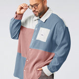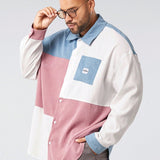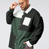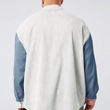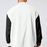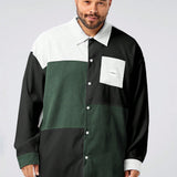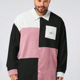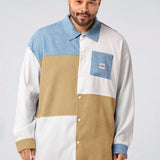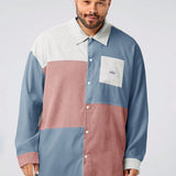 Manfinity nxtstreet camisa holgada de manga larga tejida con bloques de color de moda informal para hombres de talla grande, con ajuste suelto para uso diario