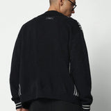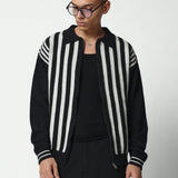 Sumwon chaqueta tipo cardigan con cremallera, de ajuste regular, con rayas revere y mangas solidas en negro