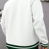Manfinity hypemode sudadera informal con bloques de color, rayas y estampado de letras para hombres talla grande. sudadera de baloncesto de cuello en v para otono/invierno, informal, de manga larga, para salir. regalo para amigos, esposo, novio.