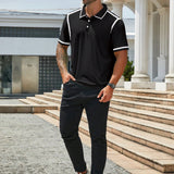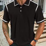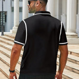 Manfinity homme camisa polo casual de manga corta con parches de unicolor y botones para hombre de talla grande