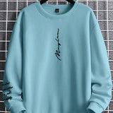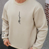 Manfinity homme sudadera casual de cuello redondo de manga larga con estampado de letra, talla grande para hombre, otono/invierno