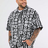 Manfinity cozemod camisa polo de punto de manga corta floral holgada y casual de talla grande para hombre