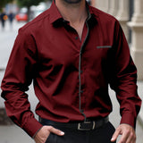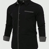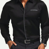 Manfinity mode camisa casual de negocios de manga larga con bolsillo y abotonadura para hombres de talla grande